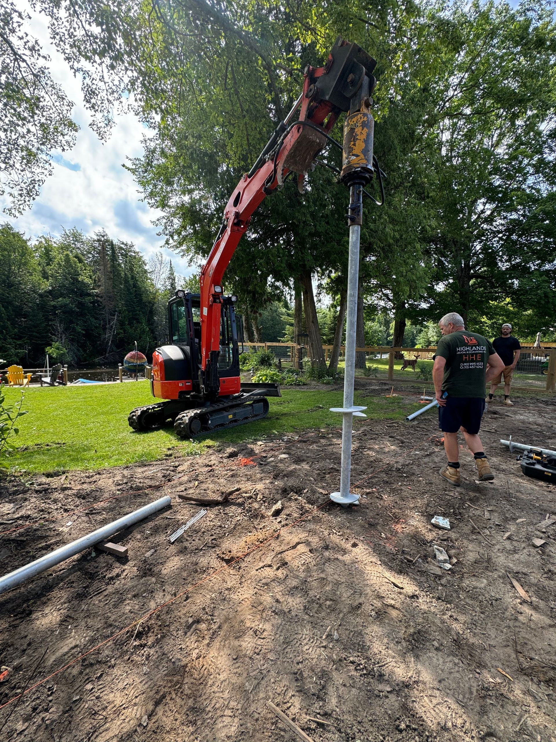 We are Certified CCMC Helical Pile installers. Whether you are thinking of a deck, addition, shed, gazebo, solar panels, new builds or anything else that would be traditionally supported by a concrete foundation, think about using helical piles.